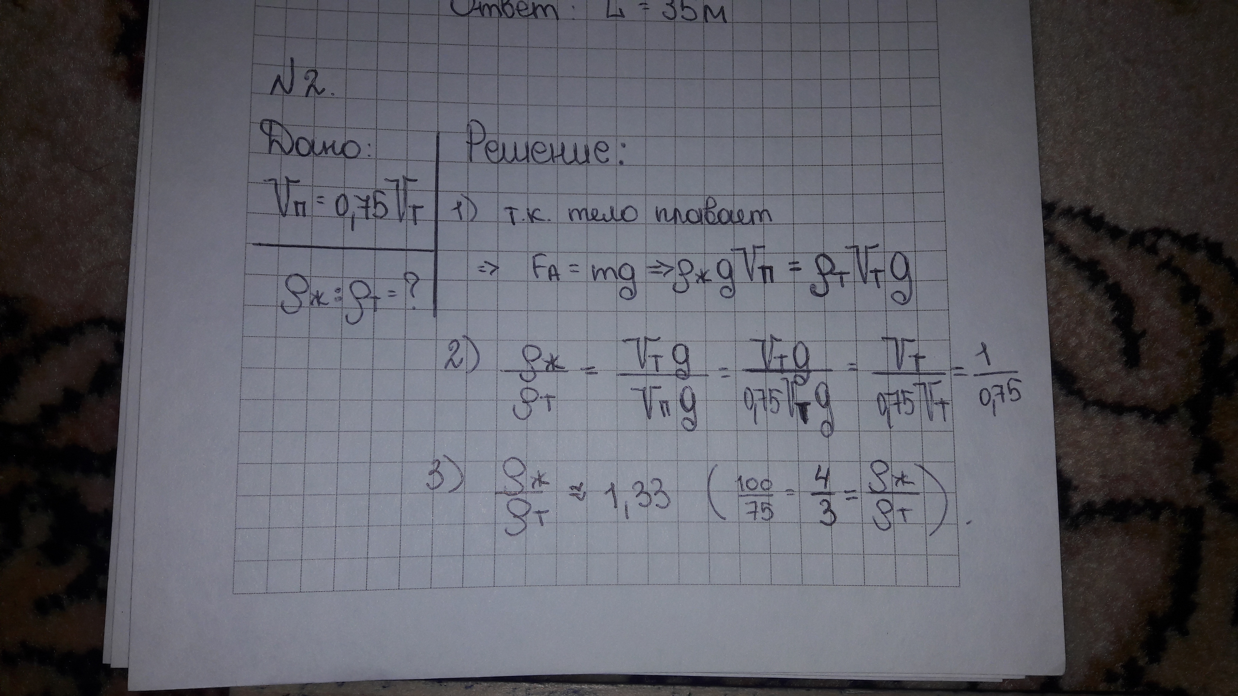 тела. Найти отношение плотности жидкости к плотности тела.