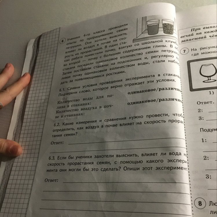 Ответ: Посчитаем количество проросших семян по окончании эксперимента в каждом стакане. Сравним результаты. Если в стакане с почвой появится больше ростков, чем в глине, значит, воздух в почве крайне необходим для растений.