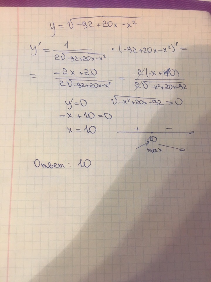 Обратим внимание на подкоренное выражение ,там находится парабола и заметим ,что ветви направлены вниз ,тем самым максимум функции будет достигаться в её вершине