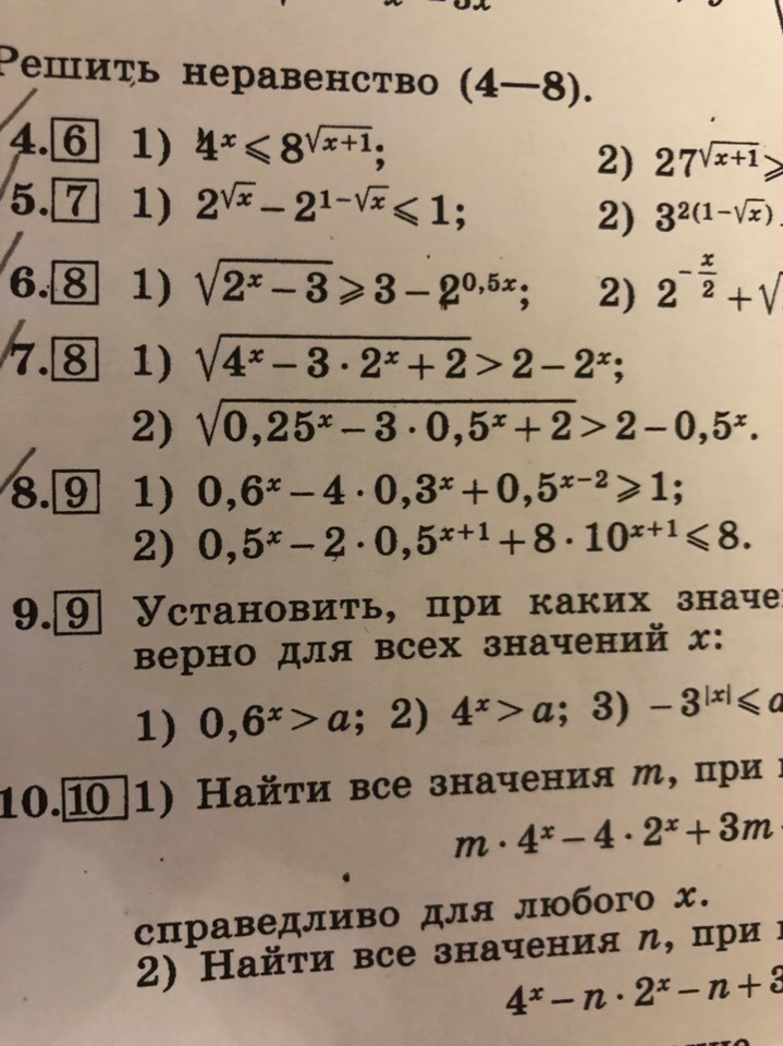 6.8 sqrt(2^x-3)>=3-2^0.5x Ответ: [2; + бесконечность)