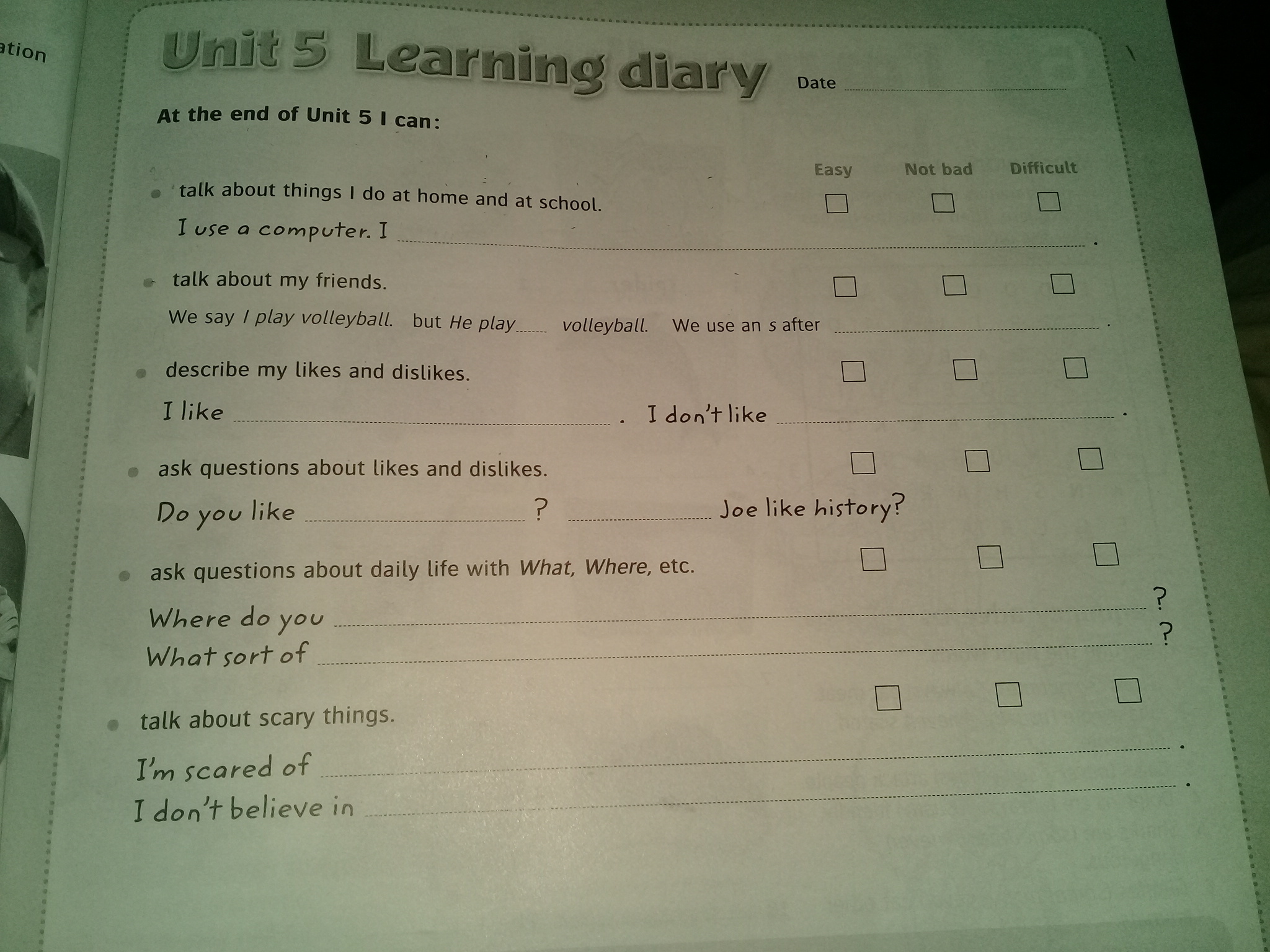 6. I'm sacred of math exam. I don't belive in ghosts.