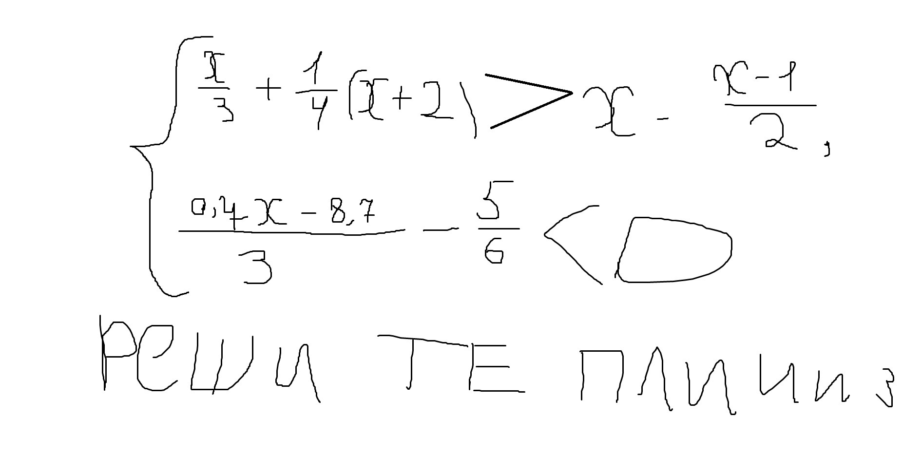 {(0,7x-8,7)/3-5/6<0 |×6 {1,4x-17,4-5<0 {1,4x<22,4 {x<16