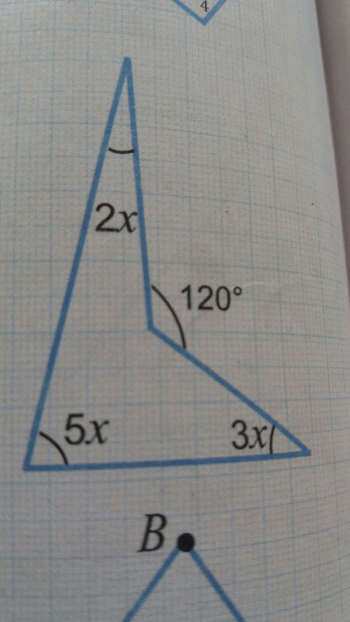 сумма углов многоугольника 180(n-2)=360, n=4, больший из углов 360-120=240. 2х+3х+5х+240=360 , 10х=120 х=12, 2х=24, 3х=36, 5х=60