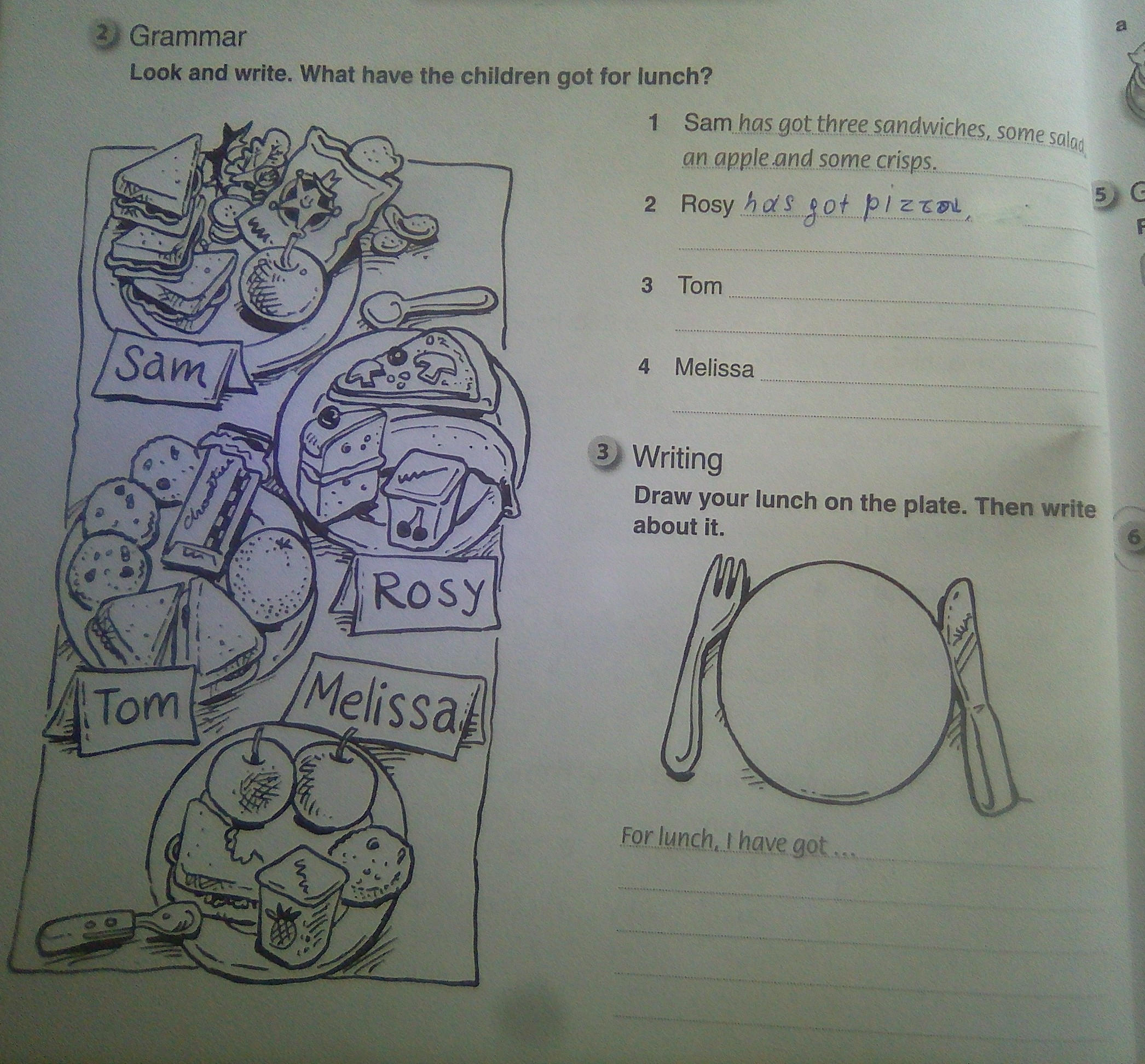 Tom has got an orange ,one chocolate,three cookies and two sandwiches.