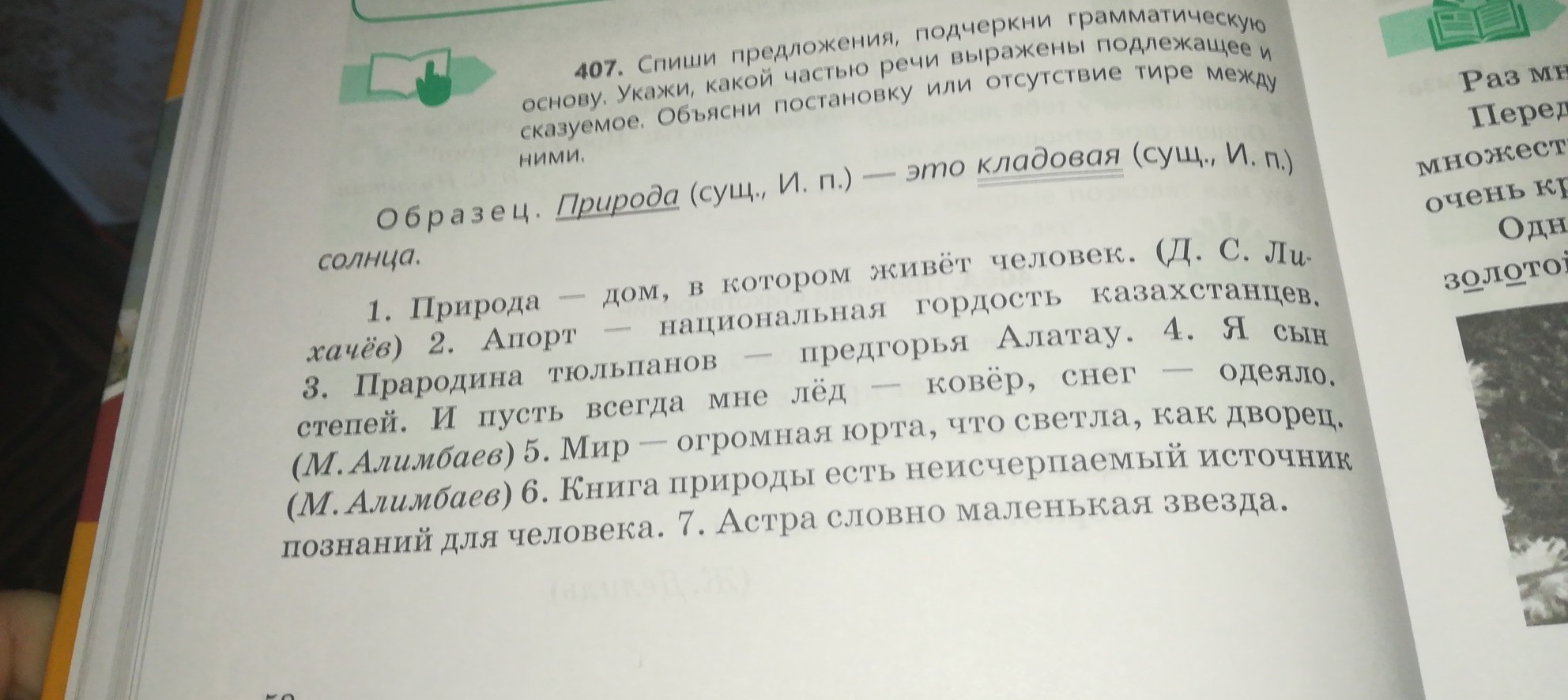 6) Книга природы есть неисчерпаемый источник (сущ, И.п) ("Книга природы" одной чертой, "неисчерпаемый источник" двумя)