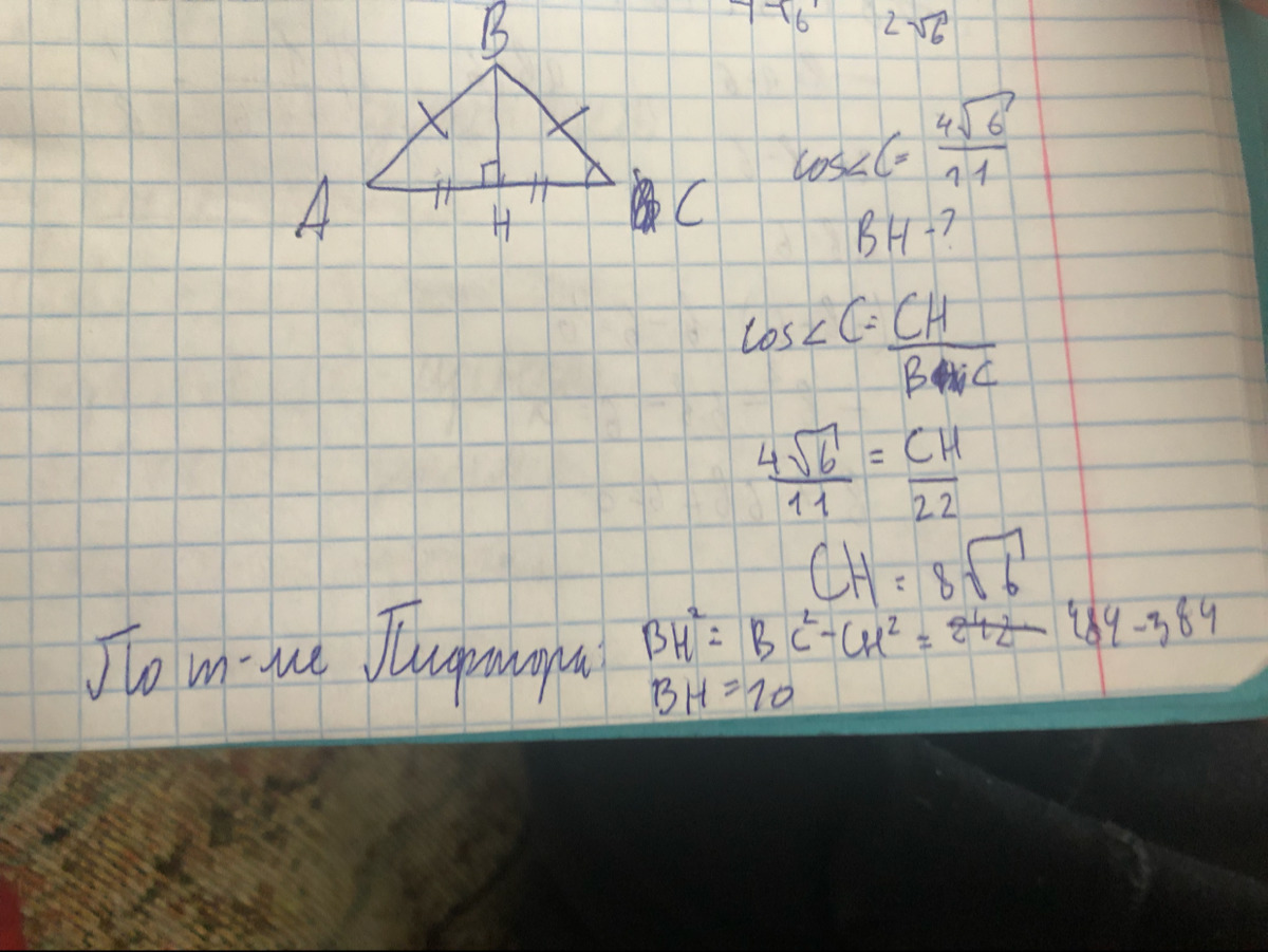 Равнобедренный треугольник и в нем рассматриваешь прямоугольный