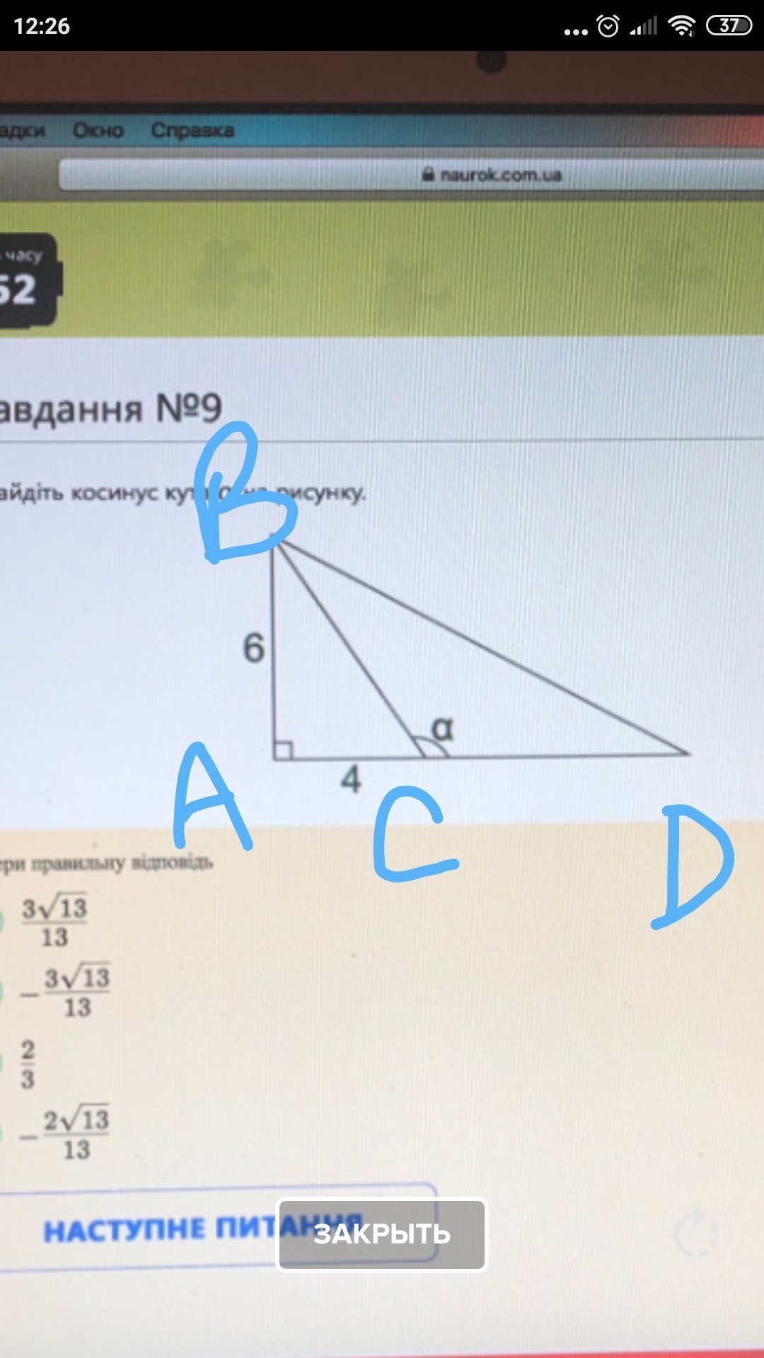 , Из прямоугольного треугольника АВС, косинус (180-а) = АС/ВС =