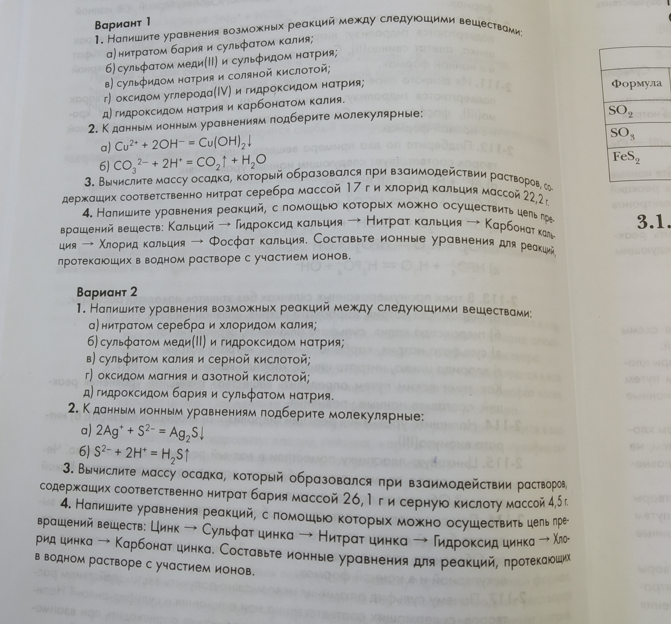 Помогите пожалуйста вариант 1 и 2 задание под номером один НАДО НАПИСАТЬ РЕАКЦИЮ ИОННОГО ОБМЕНА