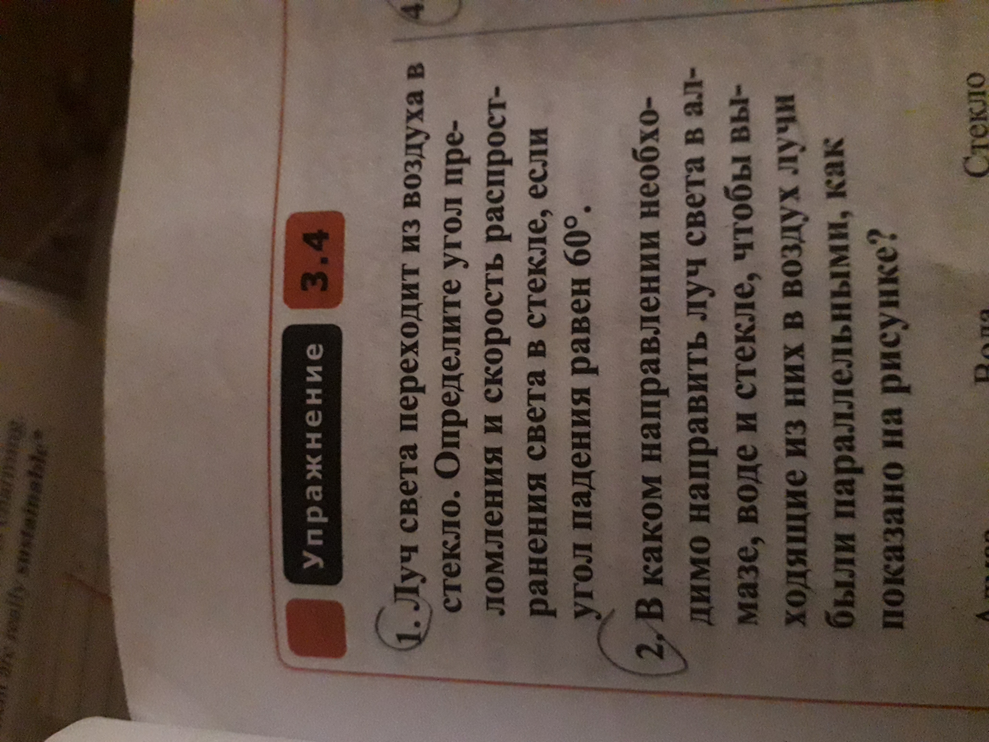 sina/sinb=n sinb=sina/n=0,87/1,5=0,58 b=arcsin(0,58)=35 градусов М=с.т=3*10^8/1,5=2*10^8 м/с
