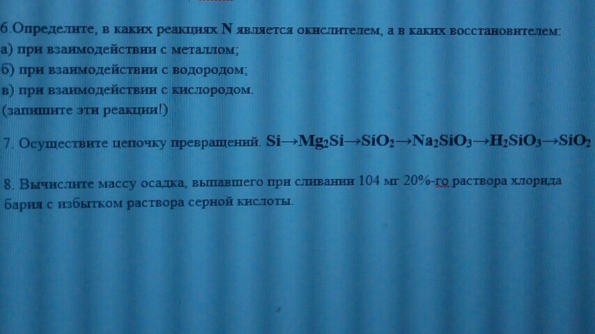 8. m (чист.) =m (р-ра)×w=104×0.2=20.8 г