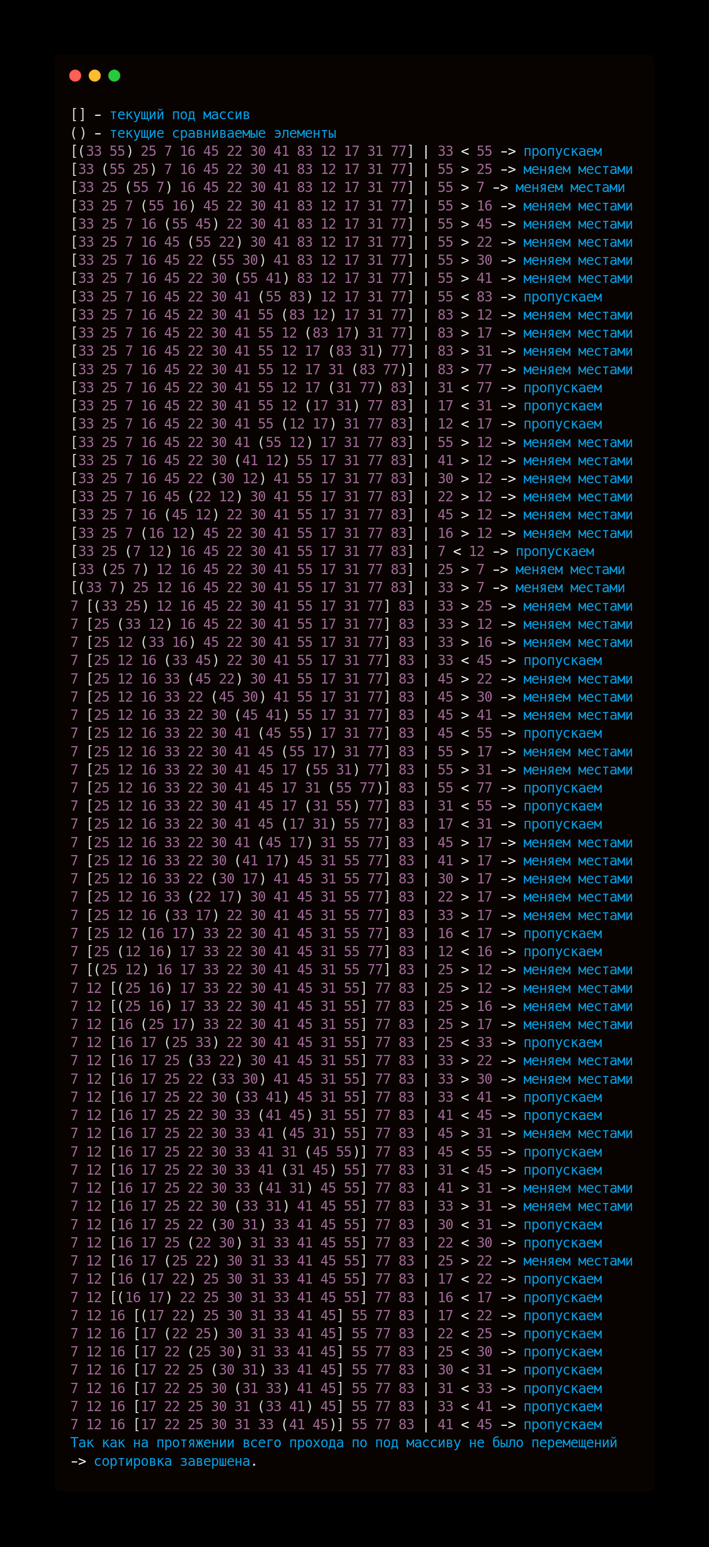 [33 (55 25) 7 16 45 22 30 41 83 12 17 31 77] | 55 > 25 -> меняем местами