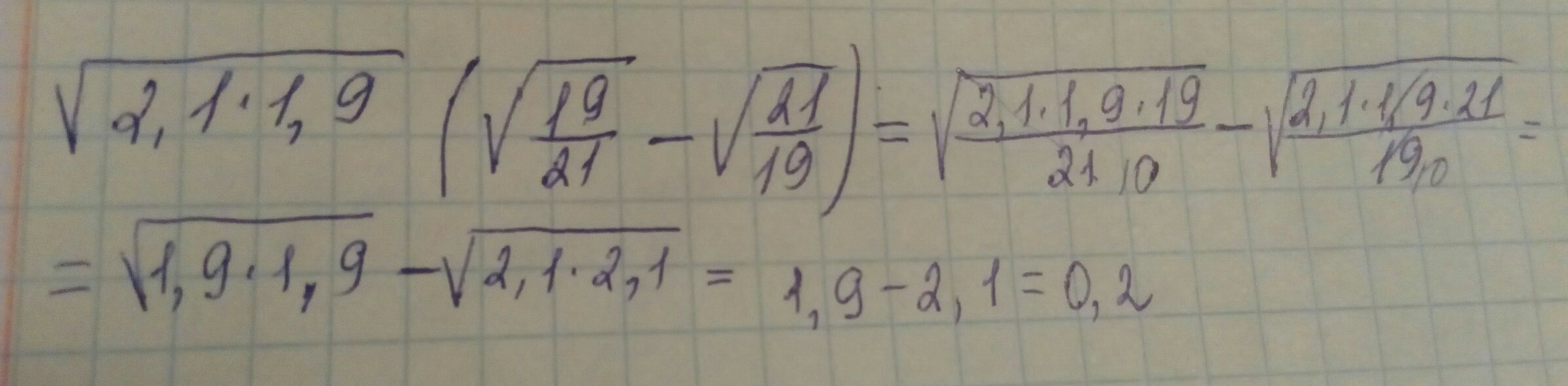 19:10=1,9 и 21:10=2,1, поэтому, затем под знаком уорня стоит не 1,9*19/10, а 1,9*1,9 и не 2,1*21/10, а 2,1*2,1