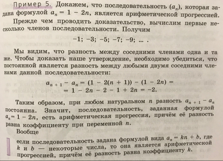 Последовательность, заданная формулой аn=kn+b, где k и b - некоторые числа, является арифметической прогрессией.