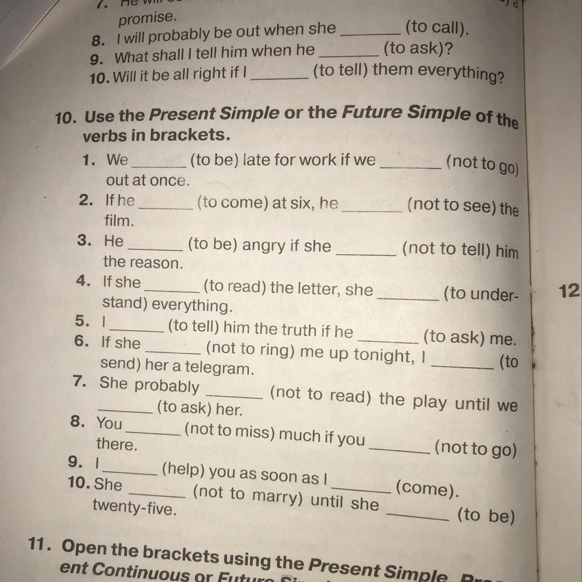 10. Use the Present Simple or the Future Simple of the verbs in brackets.
