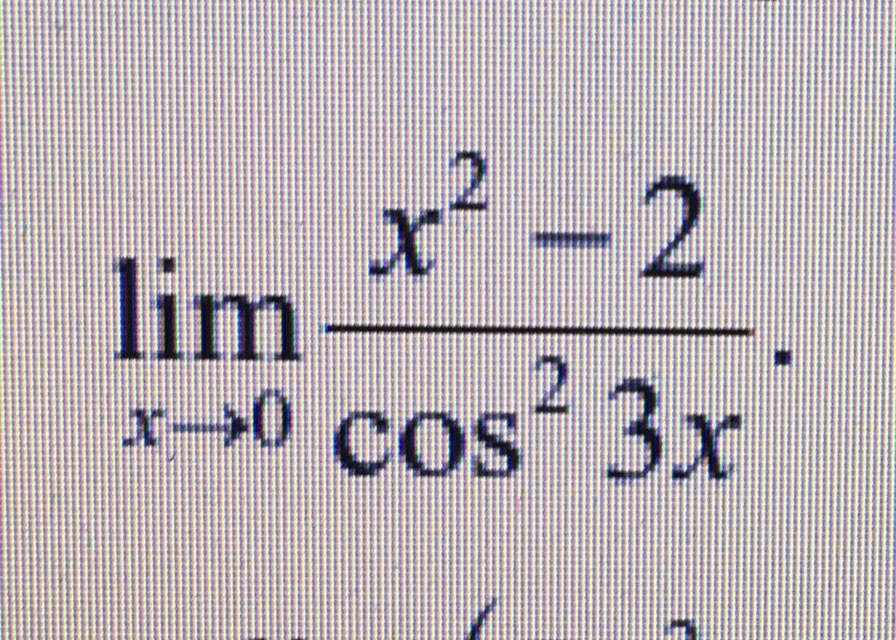 limlimits_{x to 0}frac{x^2-2}{cos^23x}=Big [; frac{0-2}{cos^20}=frac{-2}{1^2}; Big ]=-2