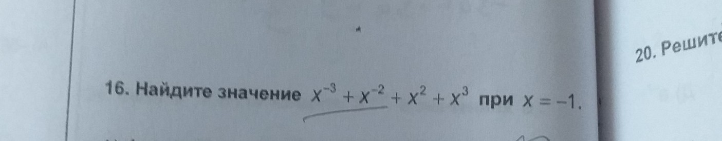 x^(-3)+x^(-2)+x^2+x^3=1/x^3+1/x^2+x^2+x^3=-1+1+1-1=0, a^(-n)=1/a^n