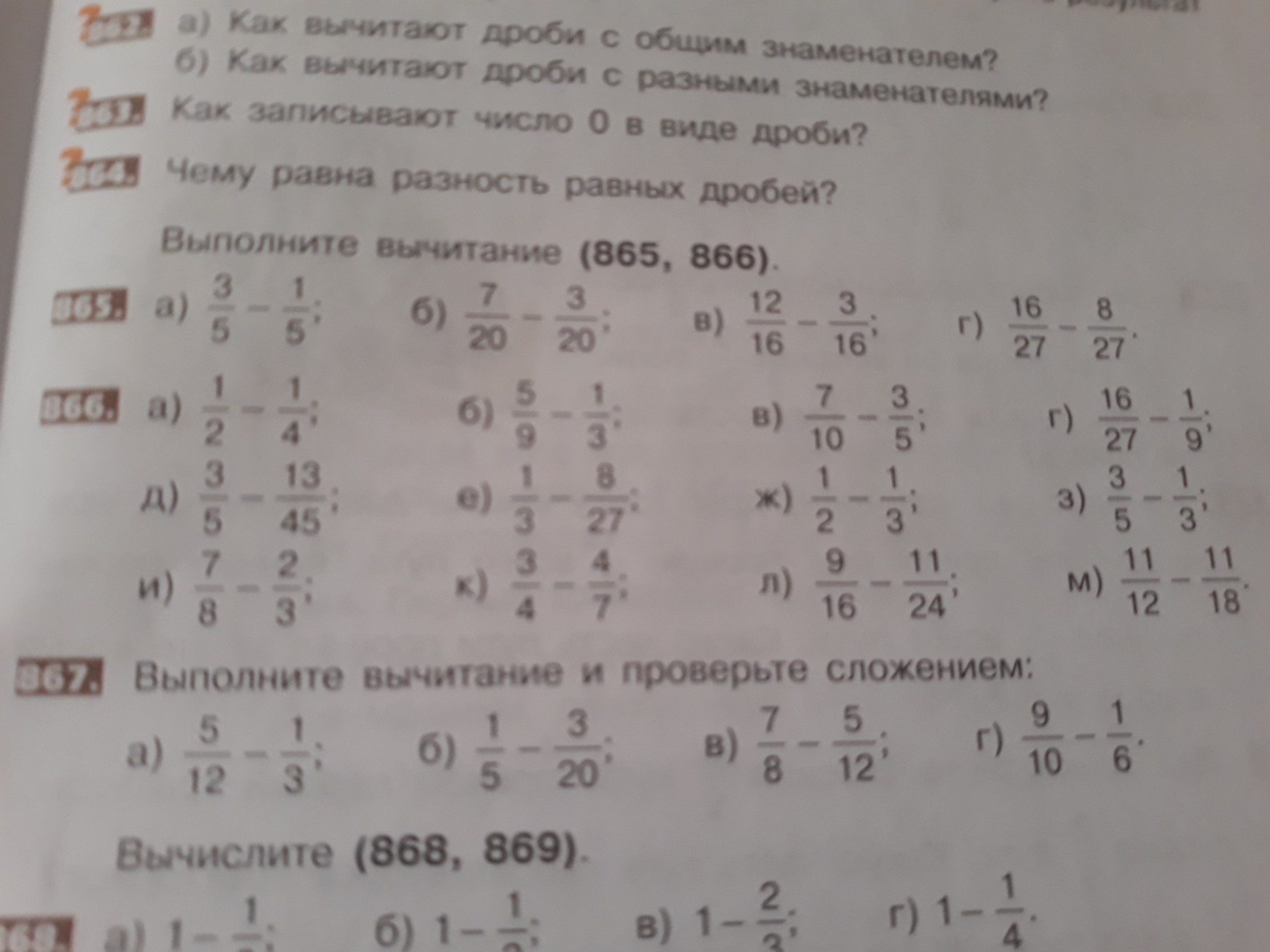 и) 7/8 - 2/3 = 21/24 - 16/24 = 5/24