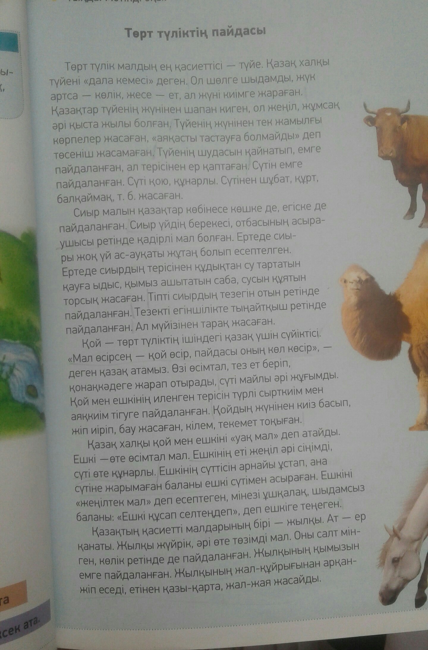 1-тапсырма) Мəтіннең қазақ халқының шаруашылығы мен тұрмысына қатысты сөздерді теріп жаз.Мысалы:жүн,шапан.....