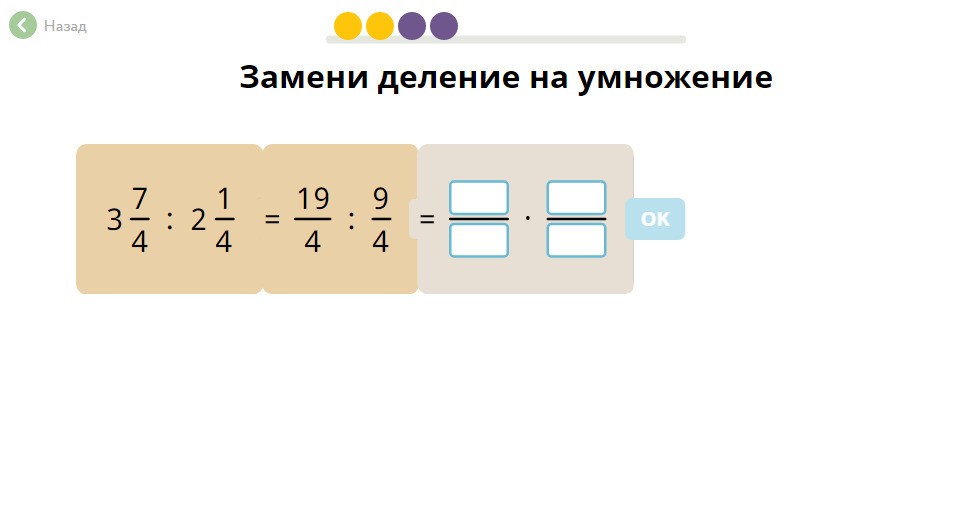 По правилам, разделить на дробь, это значит умножить на обратную ей дробь. Вы делите на 9/4, а обратная ей -- 4/9 (просто нужно перевернуть). Приведу пример для понимания. 10:(1/2)=10:0,5=20=10*(2/1)=10*2.