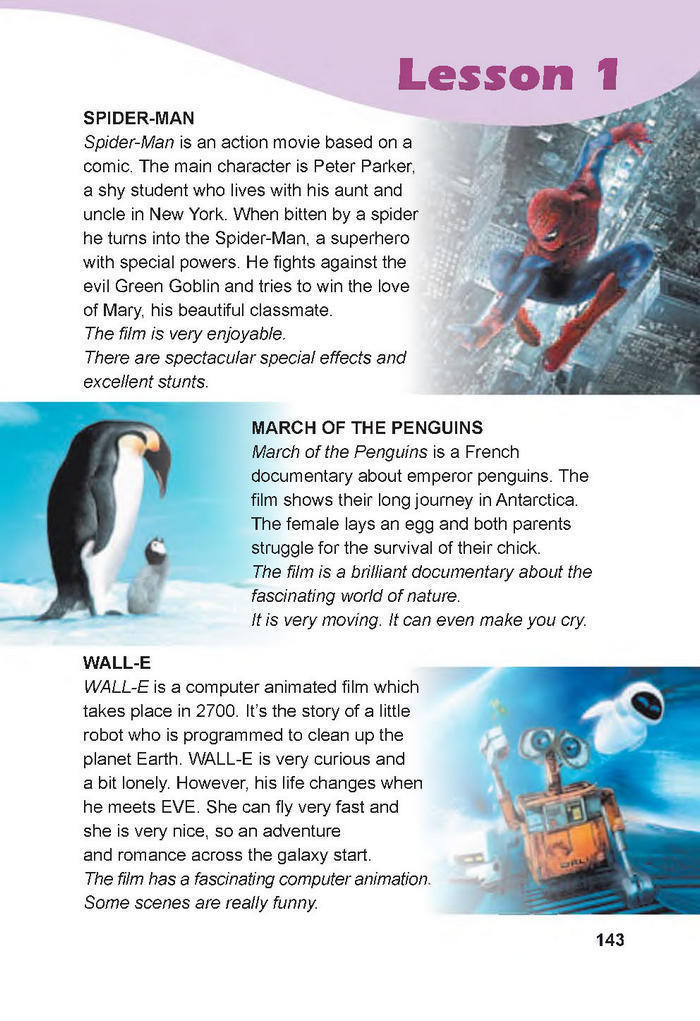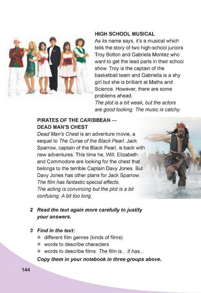 3.Найдите в тексте: разные жанры фильма (виды фильмов) слова для описания персонажей слова для описания фильмов: фильм ... он имеет ... скопируйте их в свой блокнот тремя группами выше 144