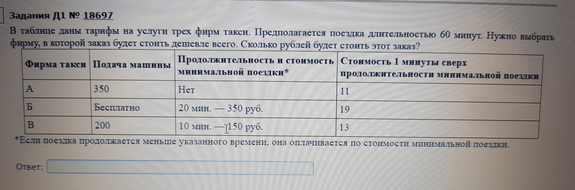 фирма Б=0+350+(60-20)×19=1110(руб)