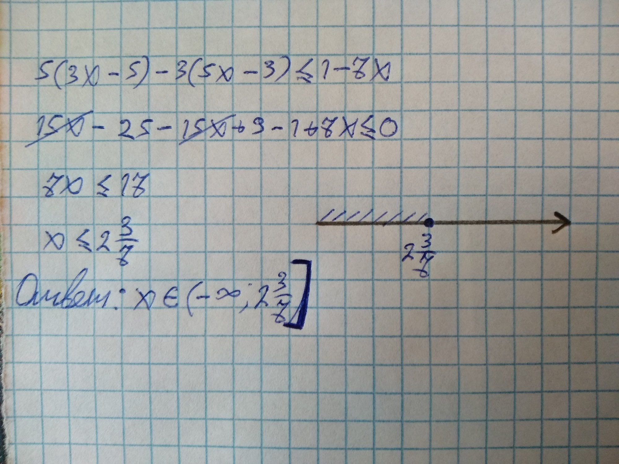 5(3x-5)-3(5x-3) ≤ 1-7x