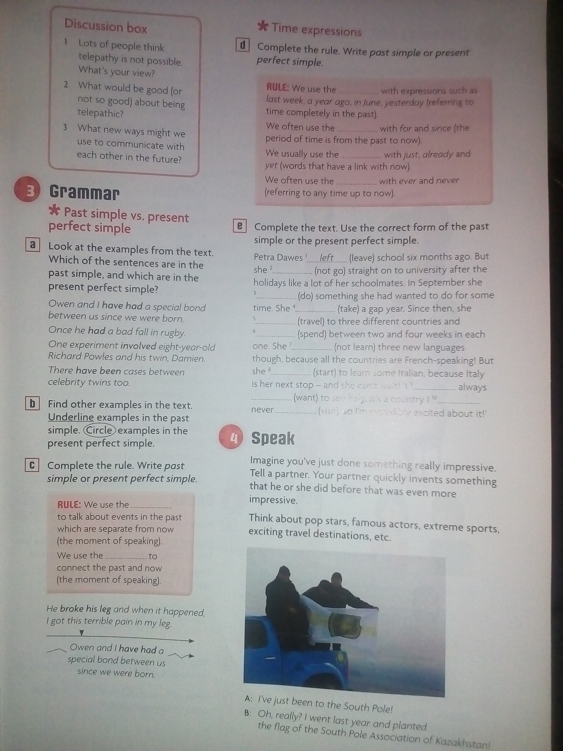 a) present perf., past simple, past simple , present perf