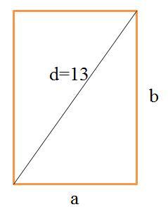 Пусть стороны прямоугольника a и b, диагональ d. Площадь прямоугольника равна: S = a · b. По условию a · b = 60, а диагональ d = 13.