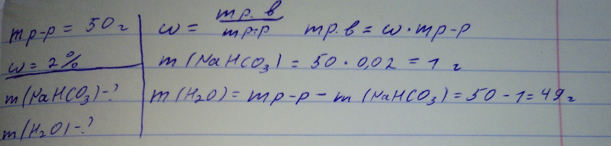 раствор состоит как минимум из 2-х компонентов - это растворённое вещество (в нашем случае пищевая сода), и растворителя (вода). значит нам надо найти массу и воды и соды: