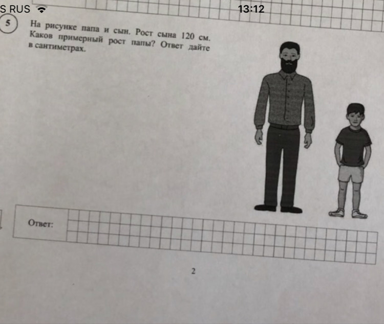 Если разделить папу на 3 части, то выйдет, что сын занимает 2, значит Рост папы примерно 180см