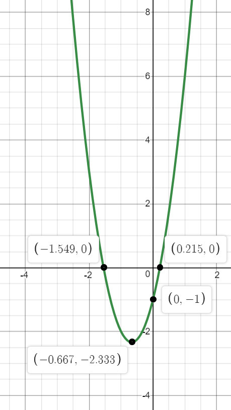 б) Область определения все числа, значит функция точно в 1 и 2 четверти, область значения [-7/3;+∞) и у(0)=-1, значит во всех четвертях, но больше всего в 1 и 2.