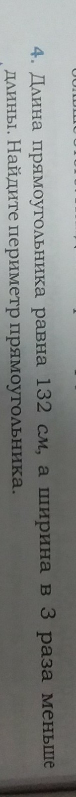 Длина прямоугольника равна 132 см, а ширина в три раза меньше длины. Найдите периметр прямоугольника.