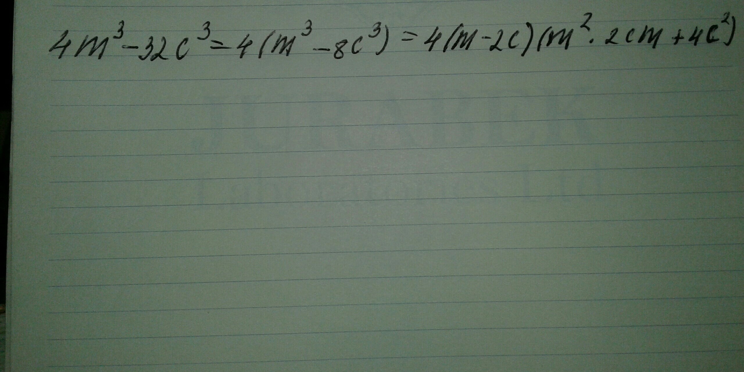 4m³ - 32c³=4(m³ - 8c³)=4(m³ - (2c)³)=4(m-2c)(m²+2mc+4c²)