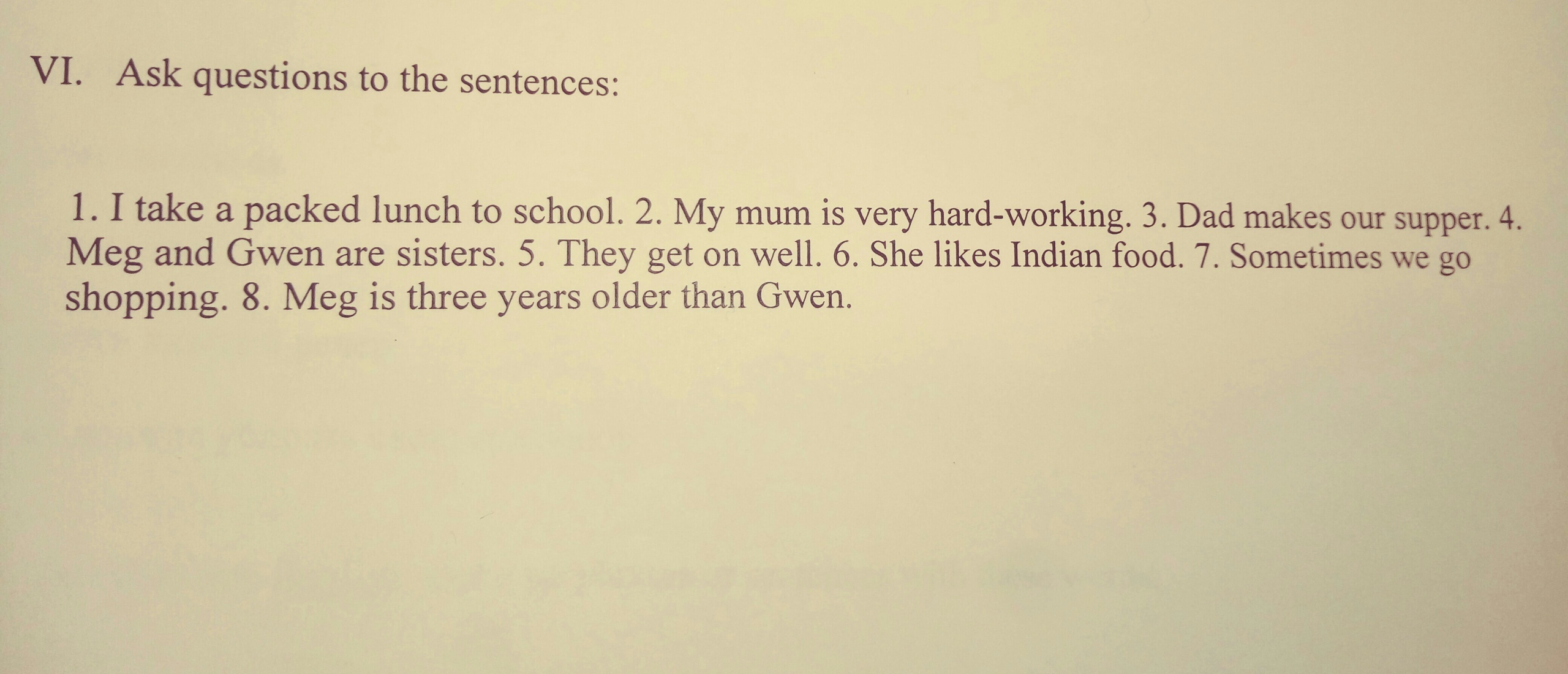 1 Did you take a packed lunch to school?