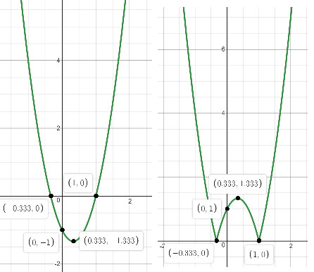 И так надо построить этот график. Это парабола, ветви которой вверх, координаты вершины (1/3;-4/3). И найдём точки пересечения с осями координат:
