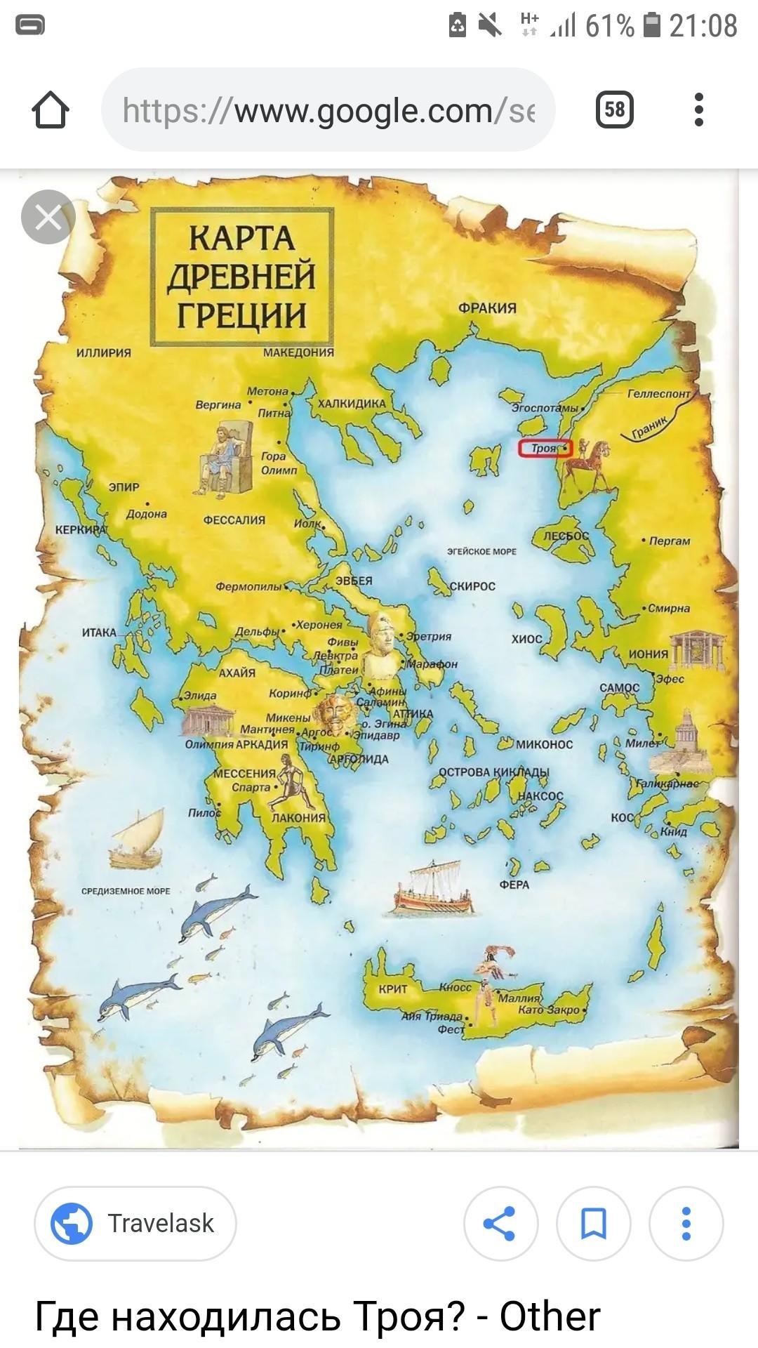 Расположение Трои «Троя» и «Илион» два разные названия одного и того же могучего города в Малой Азии, у входа из Эгейского моря в пролив Дарданеллы (Геллеспонт). Город был расположен на древнем морском торговом пути, который соединял Эгейское море с Мраморным и Чёрным морями.