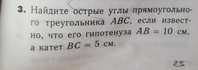 - Катет СВ, лежащий против гипотенузы АВ в 2 раза меньше, а катет, в прямоугольном треугольнике, лежащий против угла 30° в 2 раза меньше гипотенузы. ⇒ А=30°