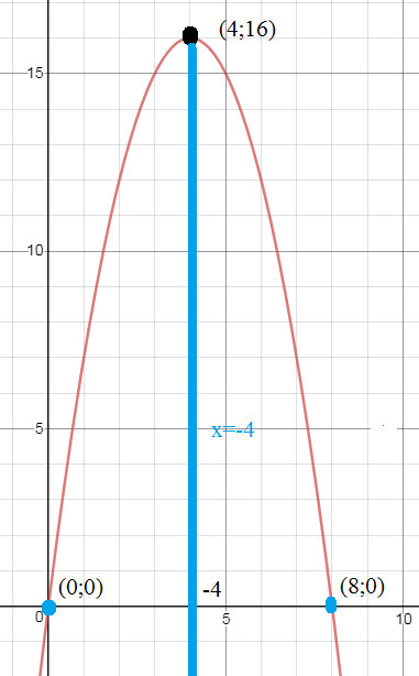 постройте график квадратичной функции f(x)=x(8-x) и определите ось симметрии полученной параболы.
