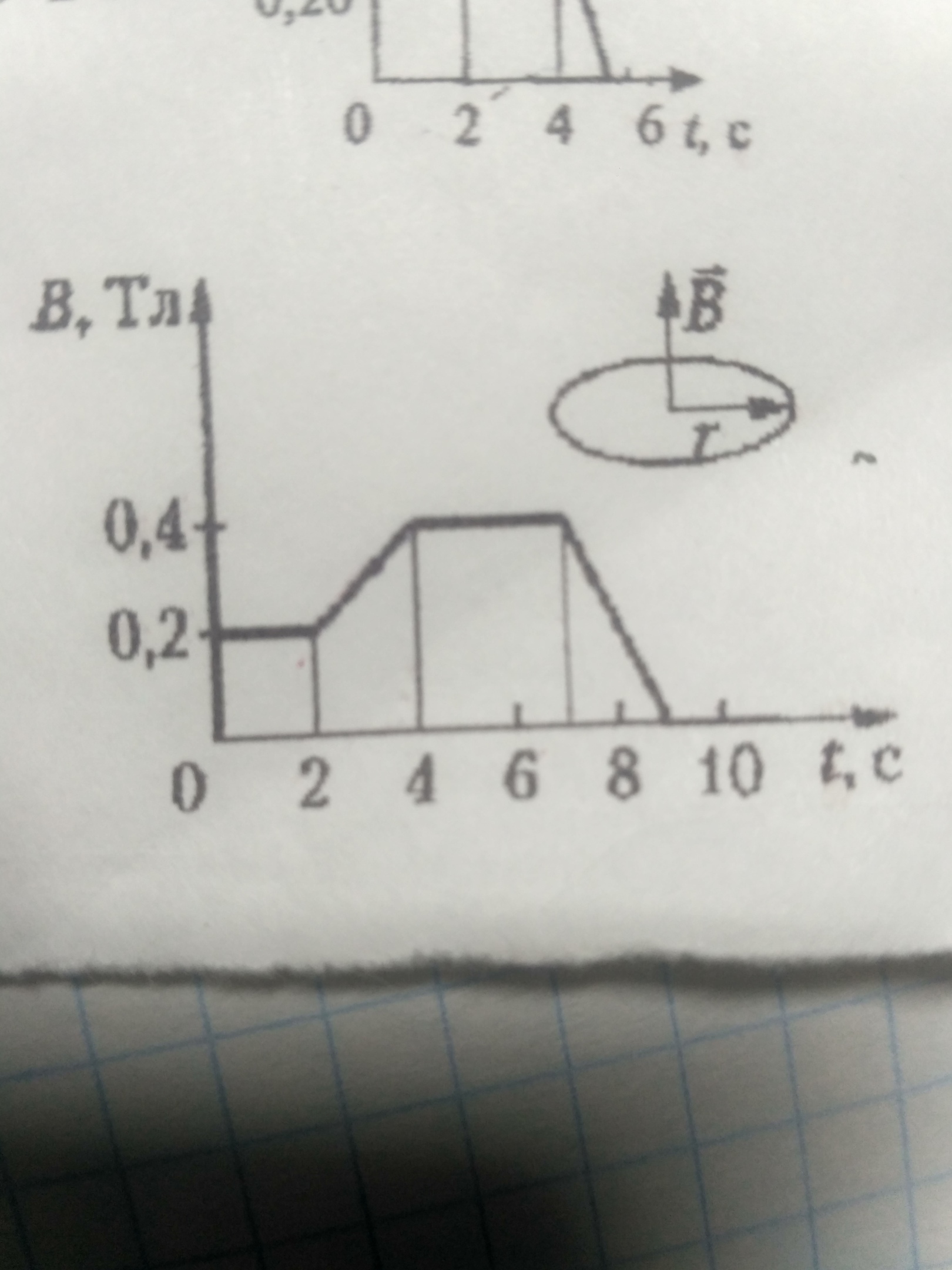 ПОМОГИТЕ ПОЖАЛУЙСТА .Проводящее кольцо радиусом 2 см помещено в однородное магнитное поле . Зависимость модуля индукции от времени приведена на рисунке . Если максимальное значение индукционного тока в кольце 2.5мА , то его сопротивление равно ....
