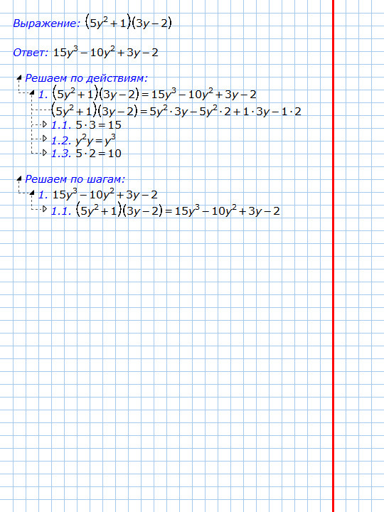 Выполните умножение: а)(5y^2+1)(3y-2)