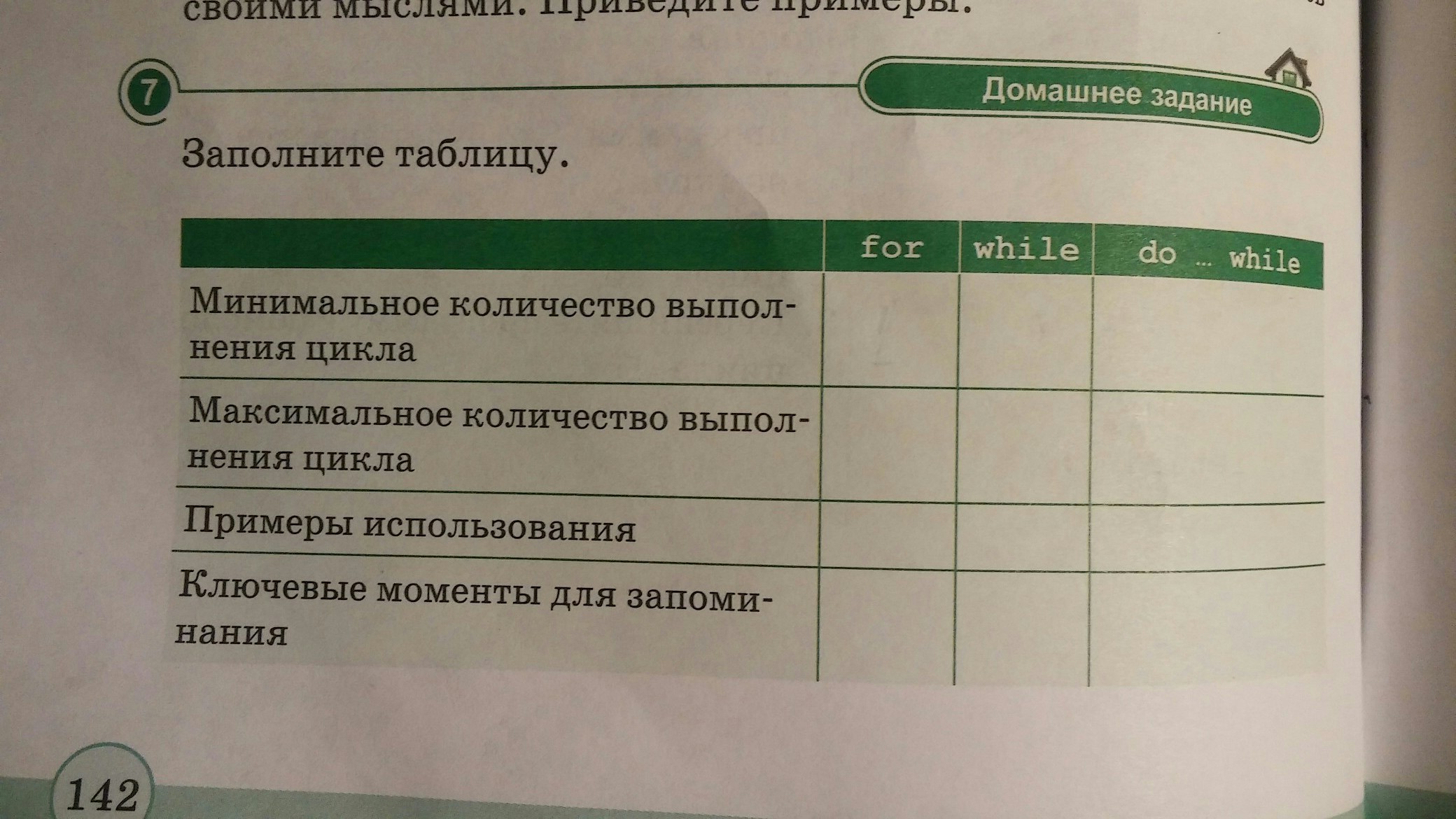 ключевые моменты: for для случаев когда знаешь сколько раз нужно сделать while: когда не знаешь сколько нужно будет выполниться циклу заранее dowhile: когда не знаешь сколько нужно будет выполниться циклу заранее но нужно как минимум 1 раз его выполнить