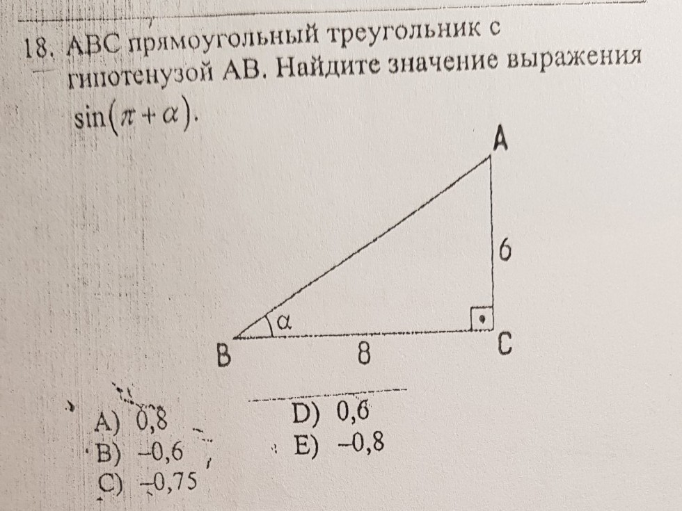 - Находим синус угла B: sinB=AC/AB. sinB=6/10=0.6