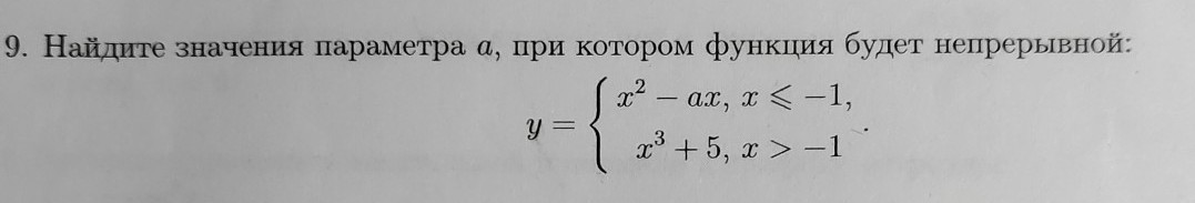 Для заданной кусочной функции, чтобы она была непрерывной, надо приравнять значения функции в точке перемены, то есть в точке х = -1.