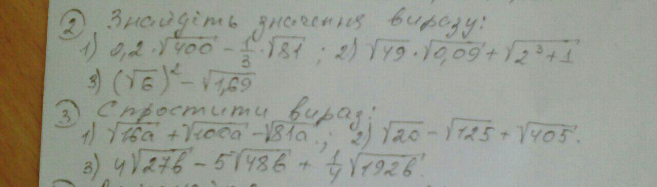1)0,2*√400-1/3*√81=0,2*20-1/3*9=4-3=1