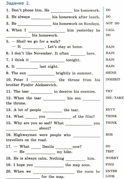 заполните пропуски, преобразуя, если требуется, слова, напечатанные заглавными буквами так, чтобы они грамматически соответствовали содержанию предложения. задание 2