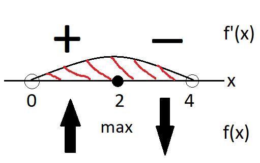 Ответ: функция : возрастает - (0;2); убывает - (2;4)