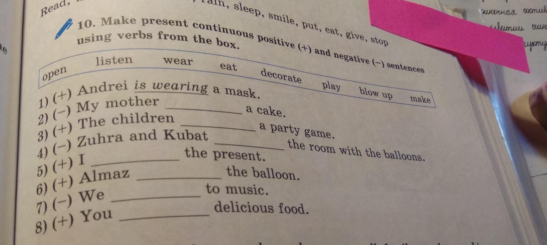 2. is not making 3. are playing 4. are not decorating 5. am opening 6. is blowing up 7. are not listening 8. are eating