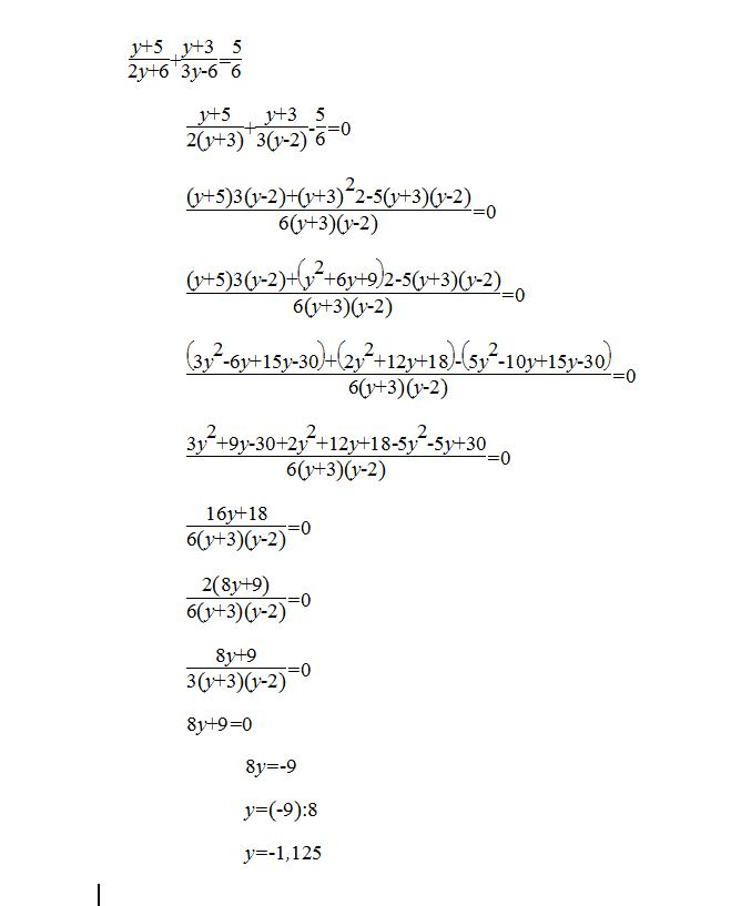 1.  frac{y+5}{2y+6} + frac{y+3}{3y-6} = frac{5}{6}