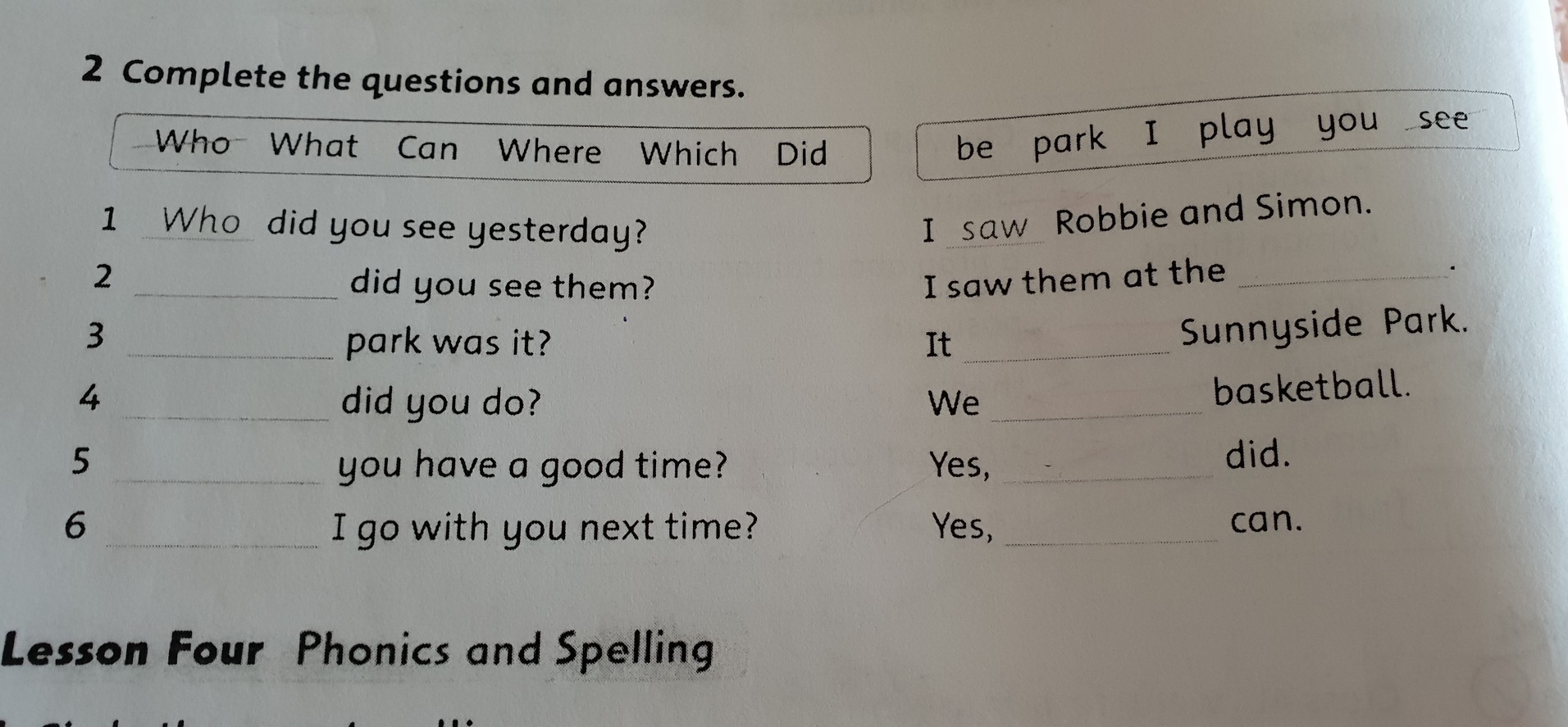 2.Where did you see them? Где вы из видели?- I saw them at the park/ Я видел их в парке.