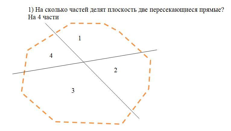 1) На сколько частей делят плоскость две пересекающиеся прямые?